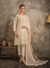 Fabric: She basks in the glory of comfort and elegance coming together in a unique pattern. The monotone design in a classic off-white giving her a lasting style for every occasion Zari & Sequin Embroidered Khaddi Net Dupatta With Anchor Thread Embroidered Lace Embroidered Messori Jacquard Front With Anchor Thread & Lurex Messori Jacquard Back & Sleeves Anchor Embroidered Lace Dyed Inner & Bottom |