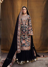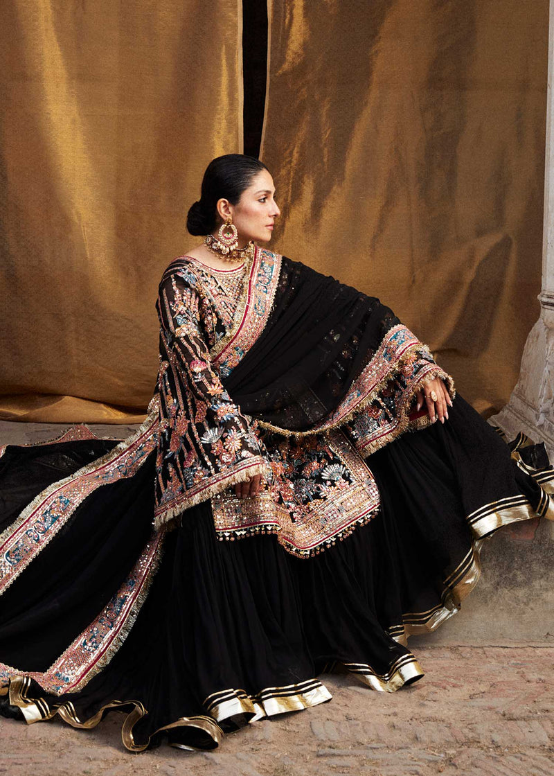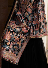 The chiffon embroidered shirt is made of lightweight and sheer fabric, embellished with intricate adda work. The chiffon sharara complements the shirt beautifully and adds a graceful and traditional touch to the ensemble. The chiffon dupatta with unique four side borders. Overall, this outfit is a perfect blend of style, grace, and traditional charm.