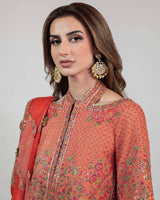 • Embroidered Sleeves spray on Dark Orange (Lawn) 2 Pieces