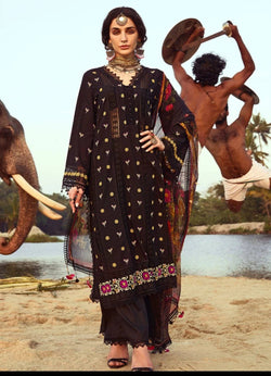 - Three Piece Embroidered Suit With Digital Printed Chiffon Dupatta