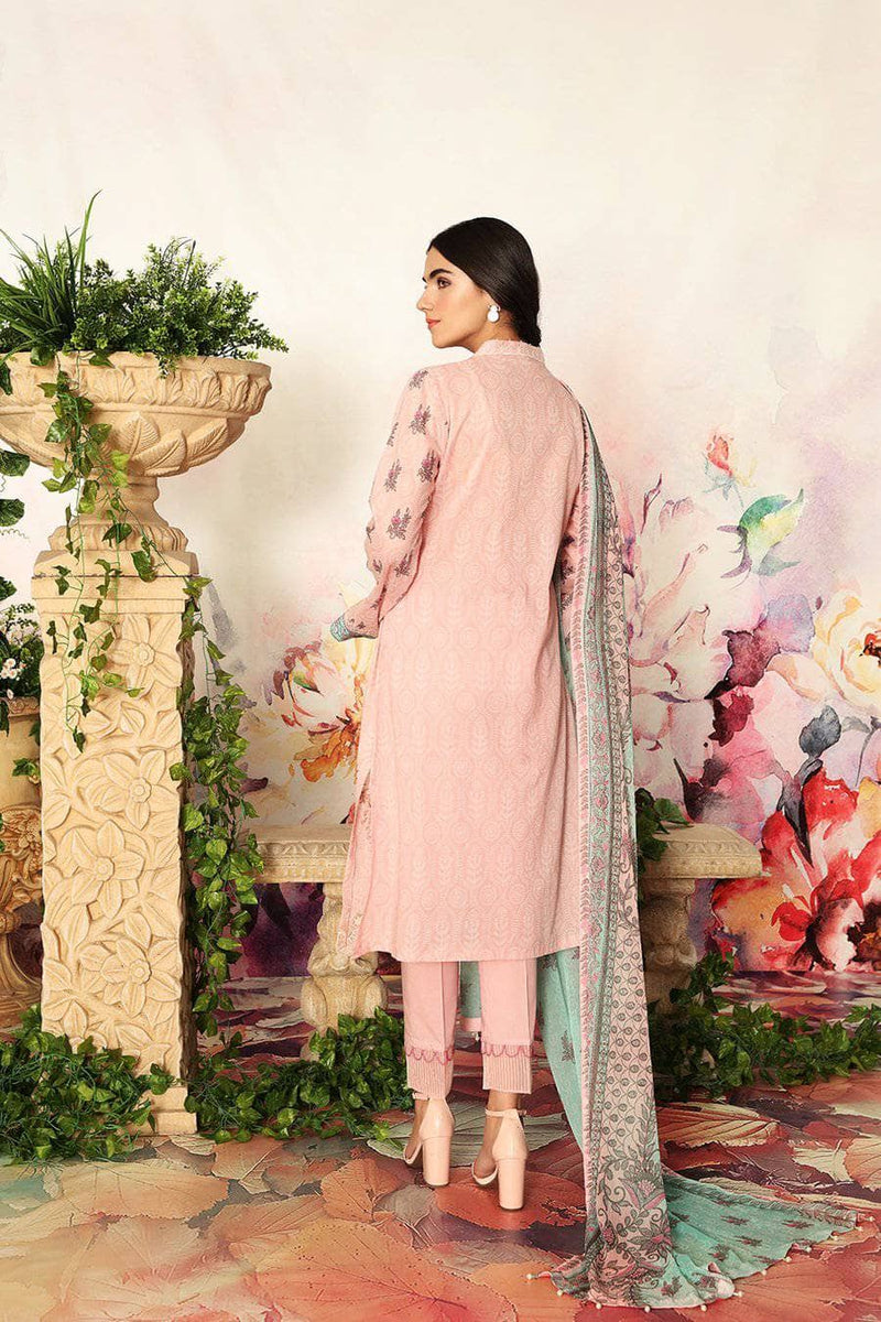 Look perfect in this Powder Pink and Light Ferozi color with embellished patterns from latest Summer 2021 Unstitched Collection VOL-2 by Nishat Linen