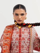 A digital-printed fusion of paisley and Mughal art in blush, terracotta, and orange, paired with a paisley rotary-print dupatta and matching pants.