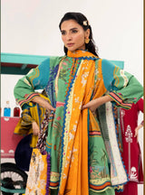 Chic contemporary shirt on a sage green base, paired with a digitally printed dupatta.