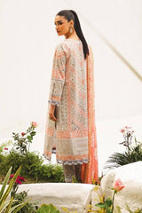 This exquisite silhouette featured on a lawn canvas is infused with gold and paste printing where motifs are inspired by mughal architecture and block print technique. Perfected with a bold indian boti inclined printed dupatta and alluring cotton pants, playing a soulful symphony.
