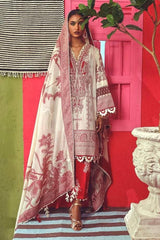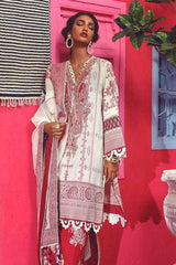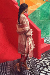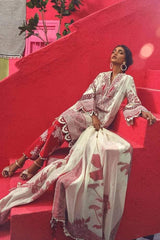 An intricate composition inspired by the hues of red and the elegance of cream on geometric designed shirt fabric. Embroidered with an ethnic resham neckline in shades of cream on red lawn base that dance on this dupatta and paired with a contrast printed floral booti pants, makes this ensemble a song in and of itself