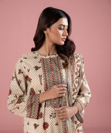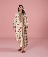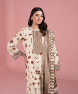 Immerse yourself in dainty patterned two-piece ensemble in off white featuring a voile dupatta.