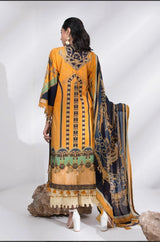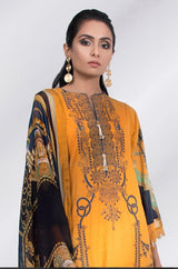 This hue adds depth to both summer and winter shades making this ensemble spark in opulence and grace in this fine lawn fabric.
