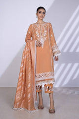 This resplendent orange hued dobby shirt is imbued in intricate silver embroidery, and is accompanied by an extra weft jacquard dupatta to elevate your look.