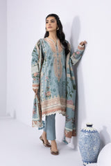 Exude confidence this season with this light blue hued unstitched glamorous ensemble featuring intricate embroidered patterns & printed dupatta.