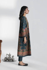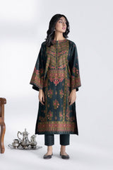 Revamp your wardrobe with this dark green hued printed shirt and trouser in khaddar.