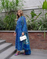 Eye-catching summery hues and premium PIMA Lawn fabric mean understated elegance and luxury remain in perfect harmony. Beryl Deep Blue is one of our absolute favourites this spring. Delicately decorated on an eye catching cobalt blue base, exciting shades of teal, greens, blues is offset with delectable with lime and lavender hues. The sumptuous, pure medium silk dupatta in a myriad of strong, vibrant hues, adds a true touch of oomph. The intricate floral embroideries gracing the entire outfit, breezy cool tones and rich silk dupatta make Beryl Deep Blue the perfect ensemble for your daily wear as well as special occasions.
