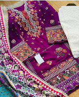 Embroidered Front Right Panel (Lawn) D/Purple 1 Piece