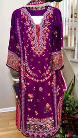 Embroidered Front Center Panel (Lawn) D/Purple 1 Piece