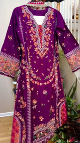 Embroidered Front Left Panel (Lawn) D/Purple 1 Piece
