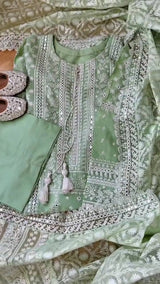 - Embroidered mirror & Sequined Dupatta four side patch