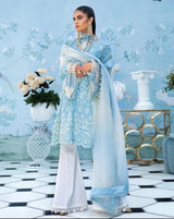 You can never go wrong with sky blue and creamy white as proven by our stellar design 'Celestia.' The floral embroideries will lend whimsical charm to your everyday look. Style as an open front jacket for an added sartorial punch or opt for a streamlined silhouette for a classic look!