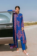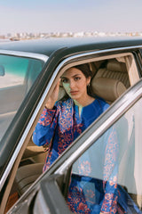 Elaborate floral embroideries unfurl on a dreamy sky blue in 'Zastar.' Accompanied by a subtle printed dupatta and monotone trouser, this botanical influenced design is a sublime look for an alfresco luncheon.